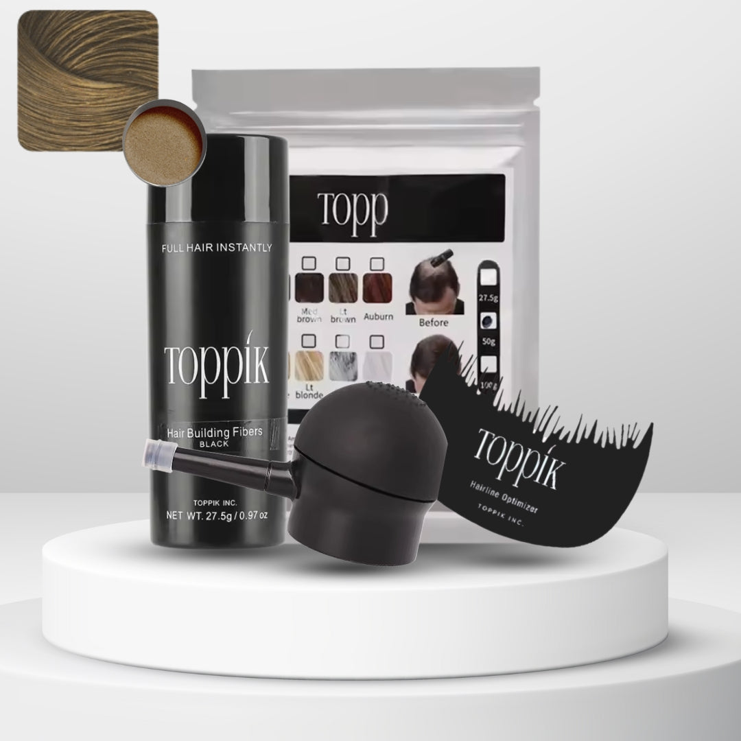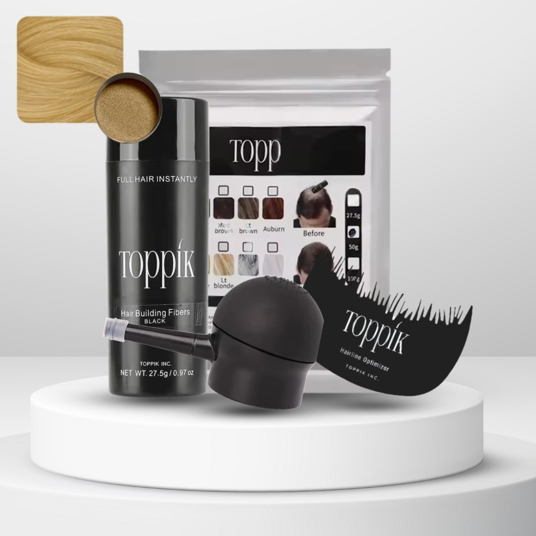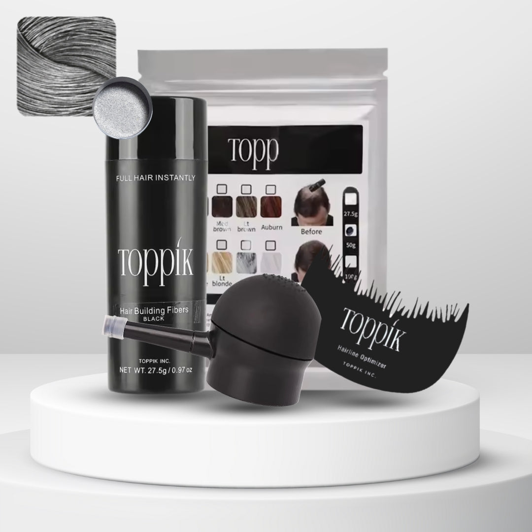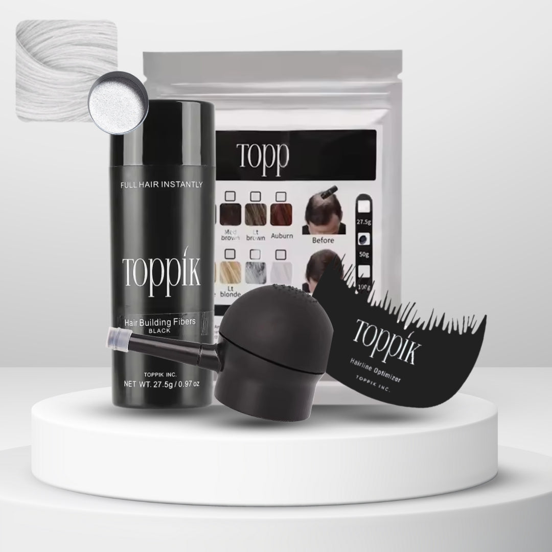 Las fibras capilares Toppik están hechas de fibras de queratina naturales y coloreadas, la misma proteína que forma el cabello humano. La proteína de queratina se deriva de una fuente natural y es casi idéntica al cabello humano.
