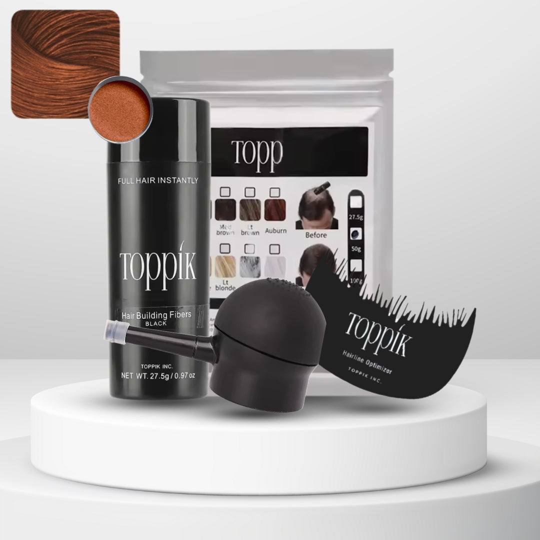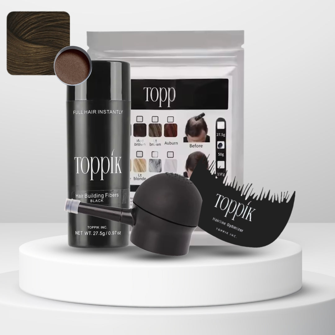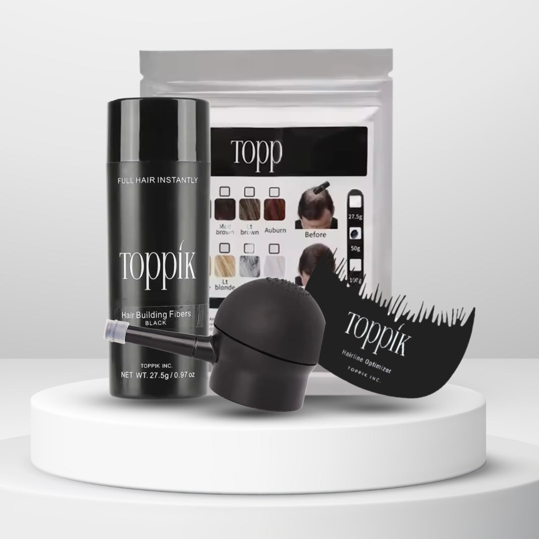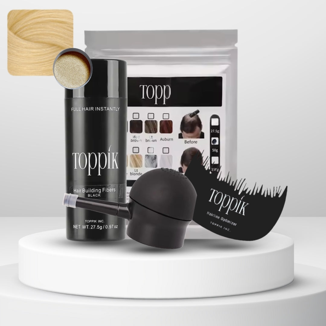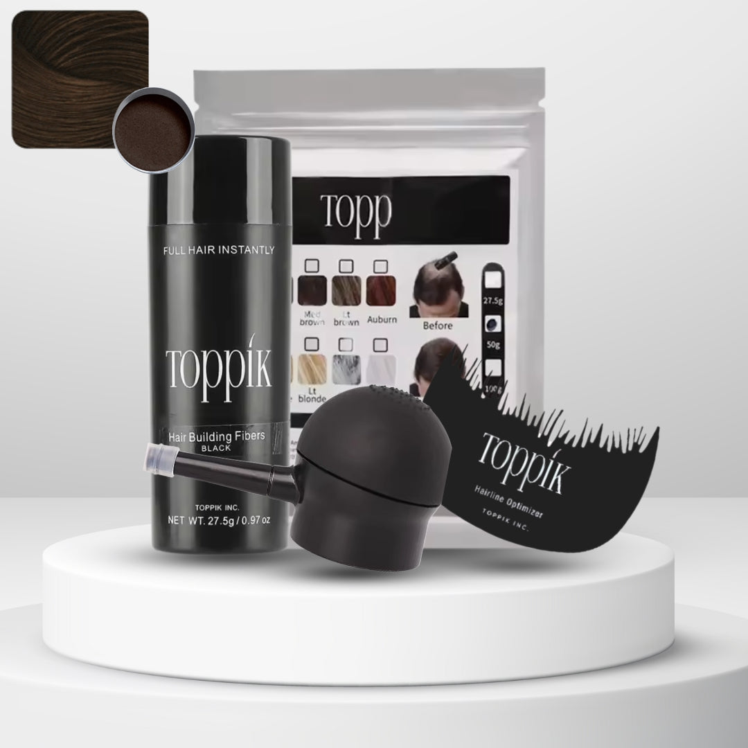 Las fibras capilares Toppik están hechas de fibras de queratina naturales y coloreadas, la misma proteína que forma el cabello humano. La proteína de queratina se deriva de una fuente natural y es casi idéntica al cabello humano.